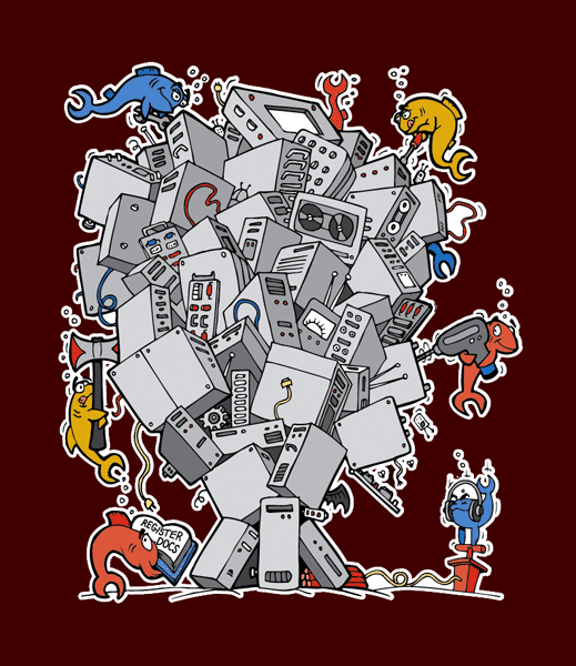 Most tshirt concepts designed by artist with Theo de Raadt or Bob Beck.